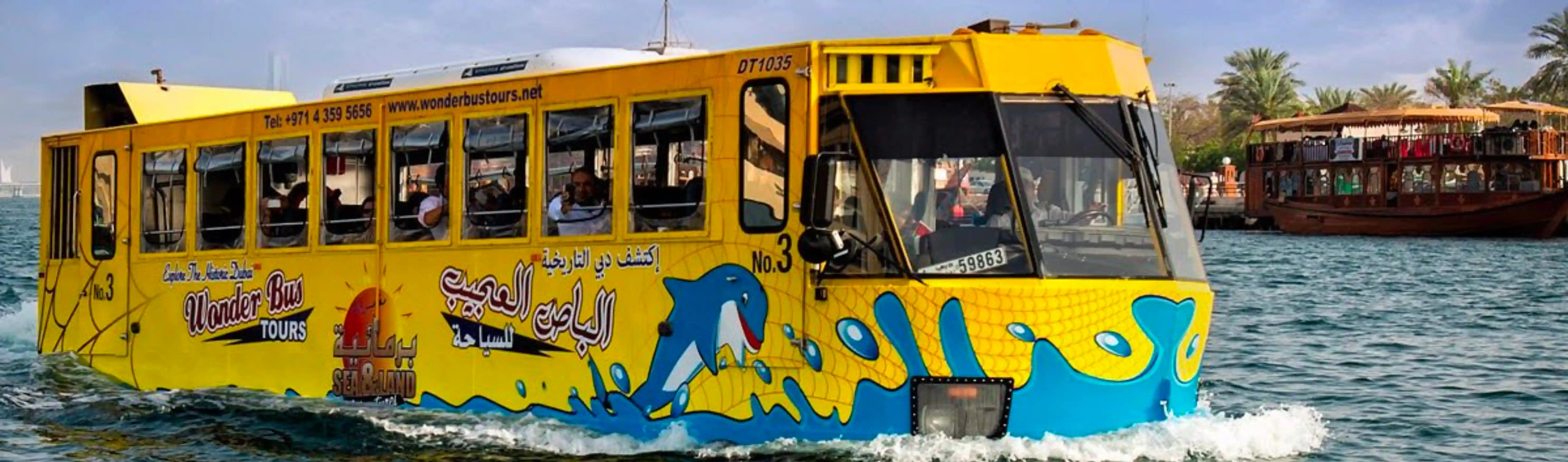 Wonder bus is an amphibious bus that runs from one of Dubai’s commercial centers passing through the ancient archaeological landmarks of the city, and then goes down into the creek water by turning from a bus to a boat. During the wonder bus Dubai trip the tourists are provided information on UAE and Dubai archaeological and historical landmarks. A unique and different experience that you have never seen before with a moving icon that roams its way towards the unknown and within an eye blink becomes a legend that cuts through the sea through time and history to become a memory experience that is attached to your mind over the course of life.